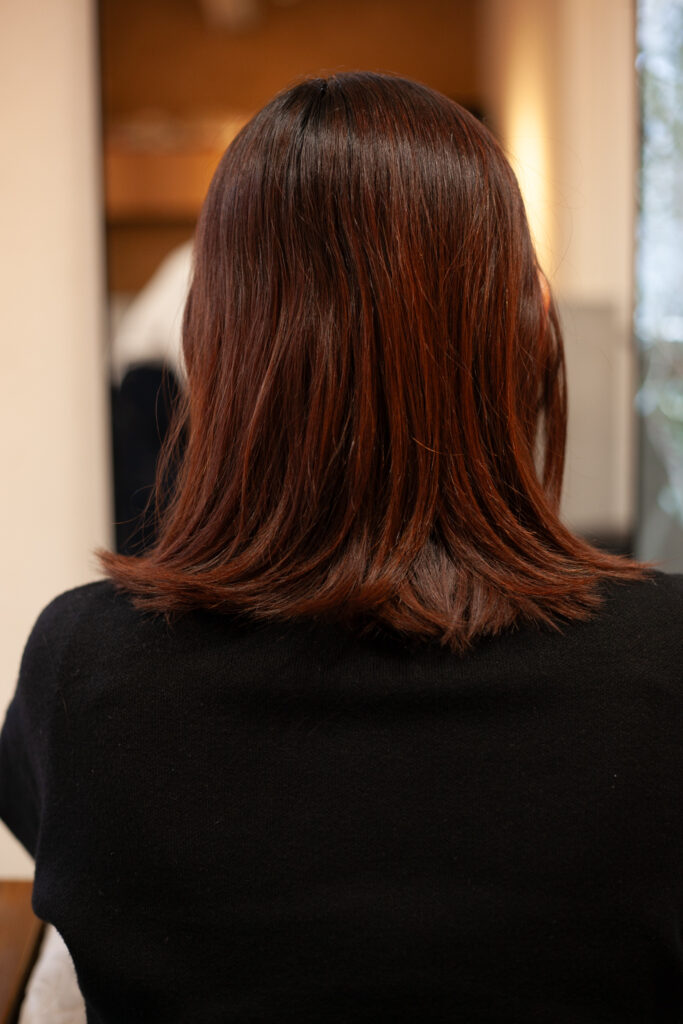吹田でナノバブルカラーでお手入れ楽な艶髪外ハネに