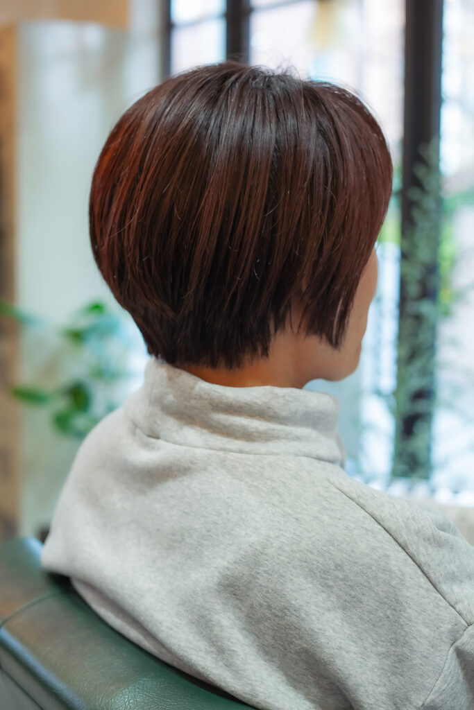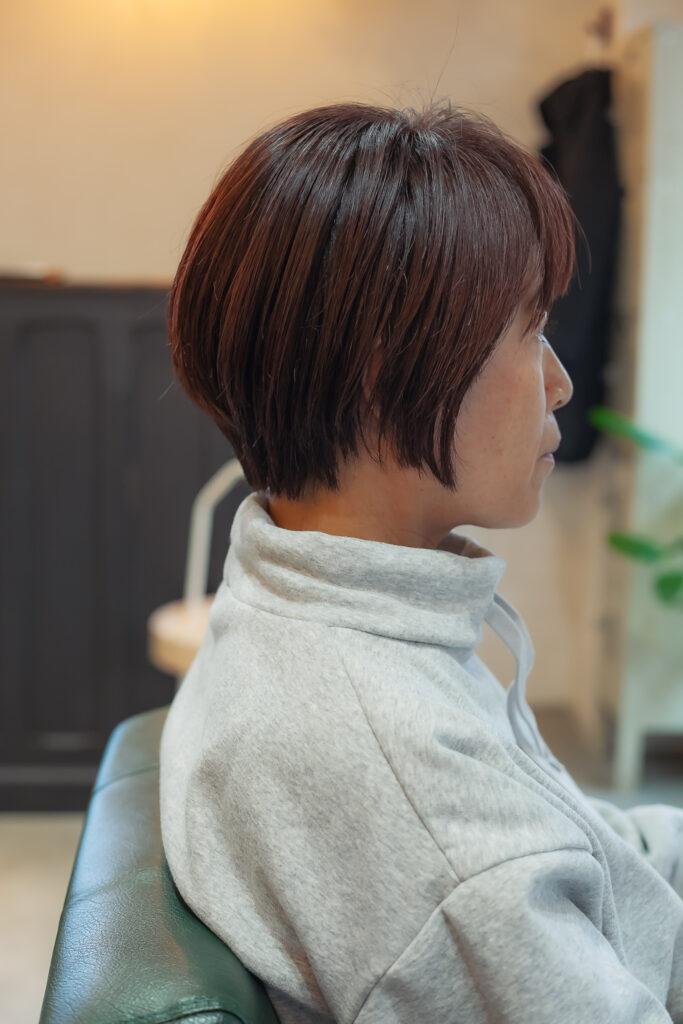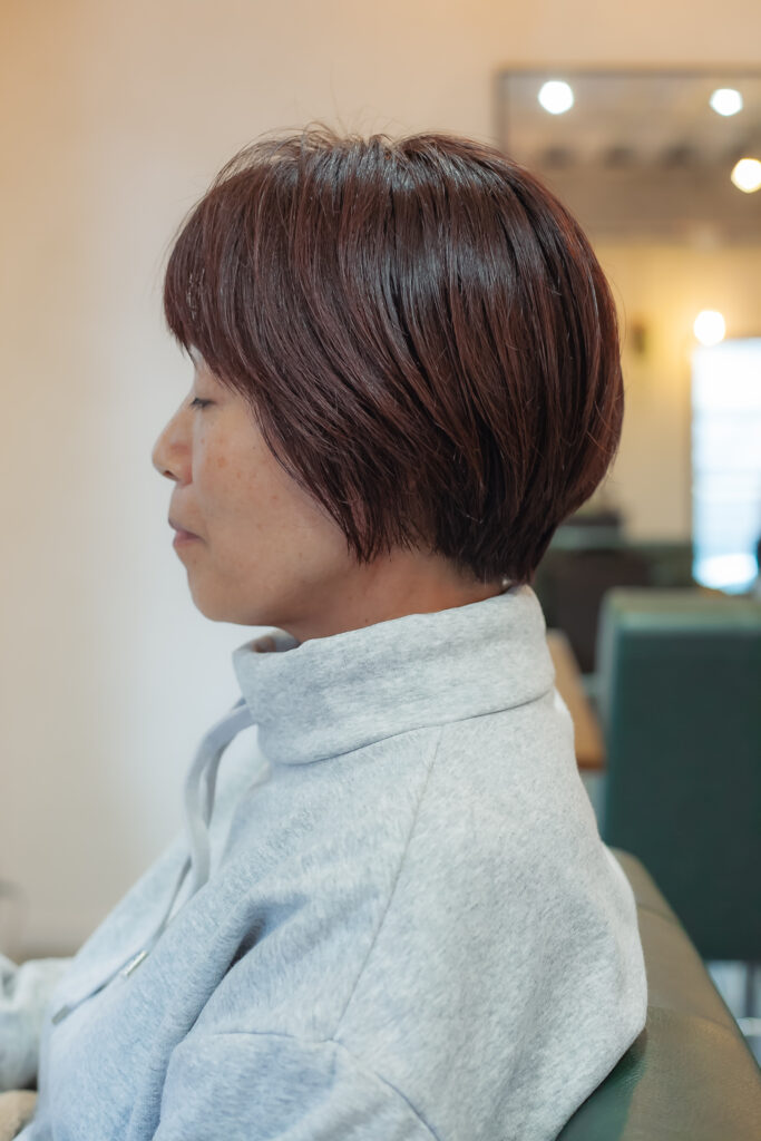 吹田でナノバブルカラーで艶やかで収まりよいショートボブ