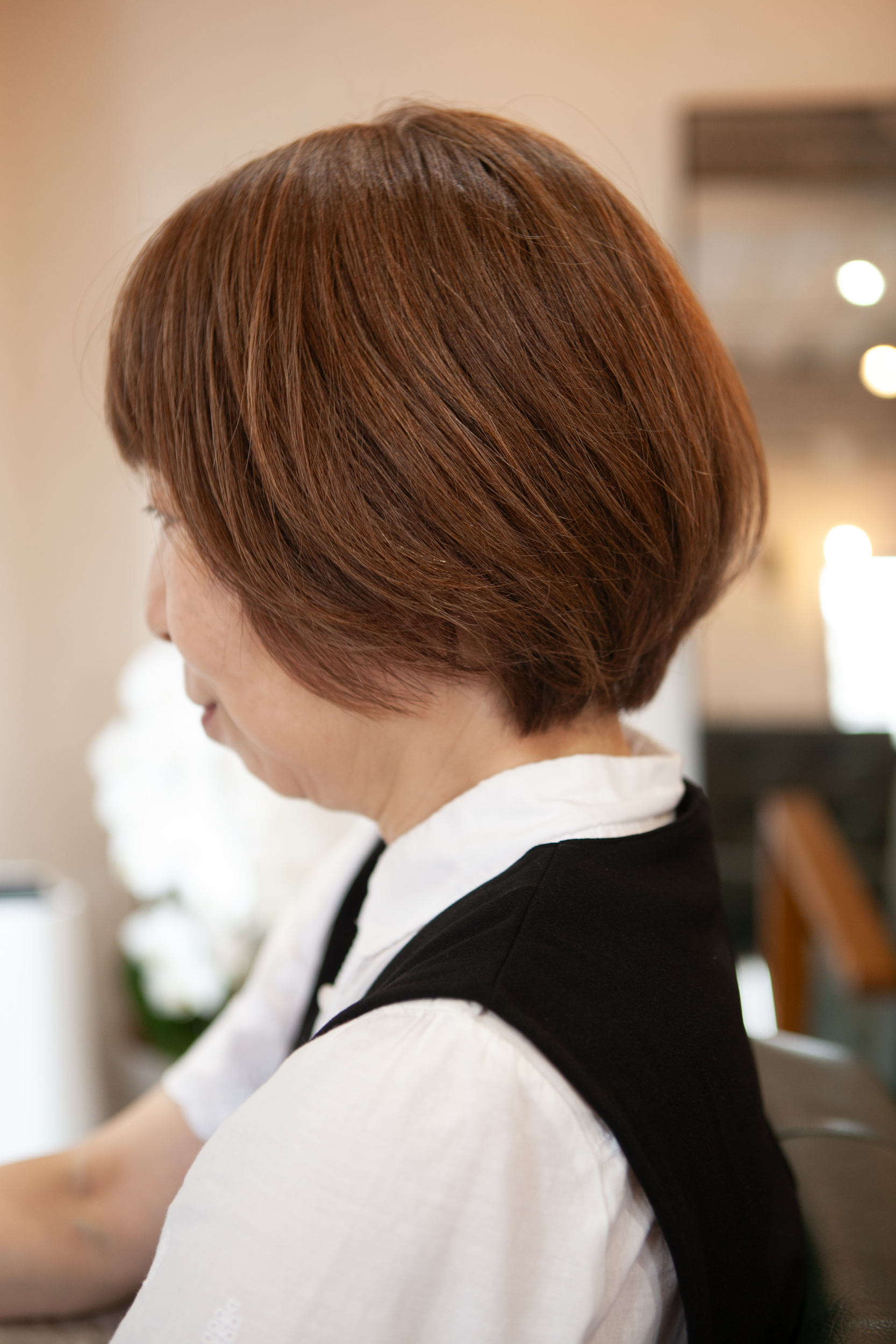 白髪を明るく気にならないショートデザインに(吹田)