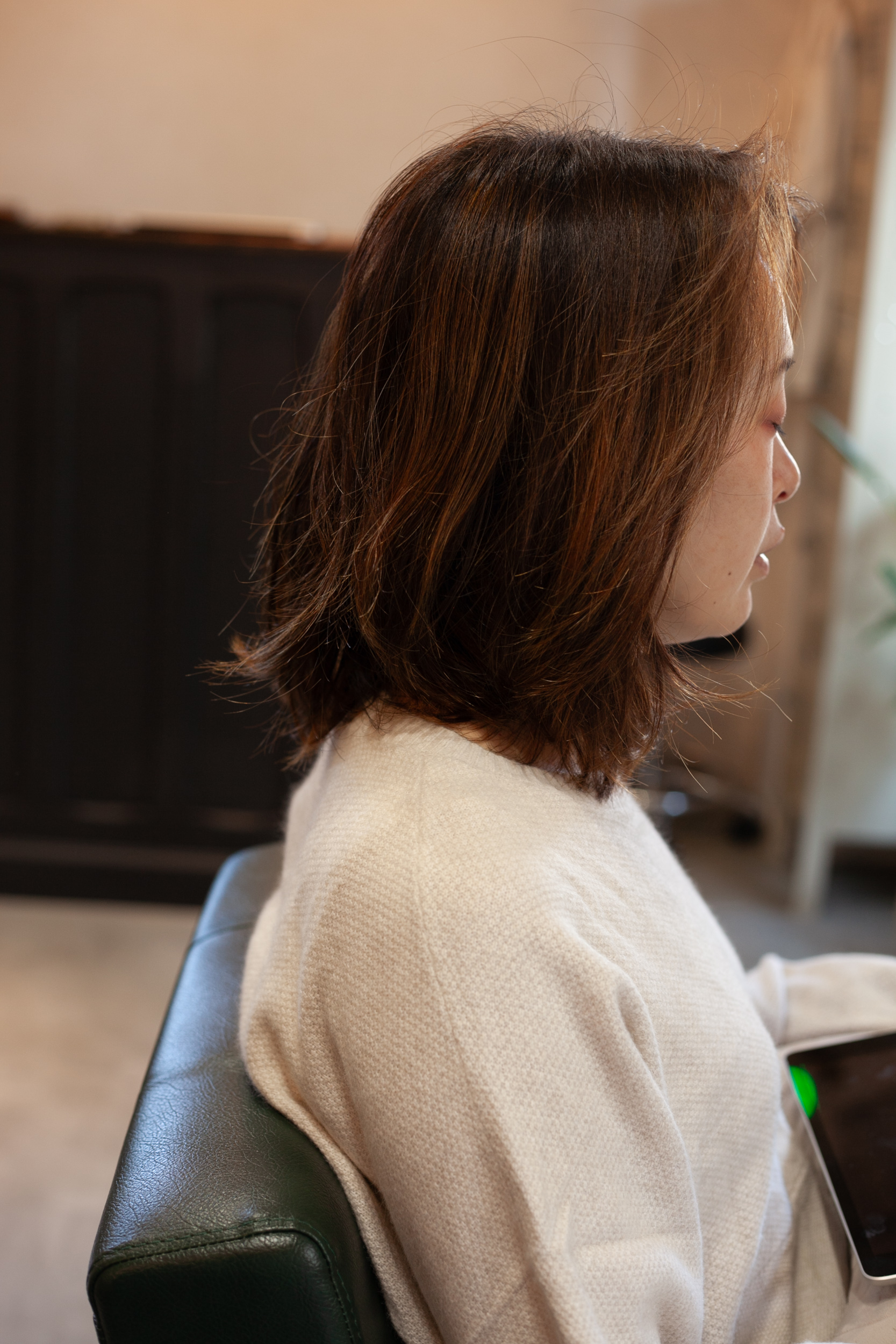 吹田でナノバブルカラーで白髪も気になりづらく艶髪に